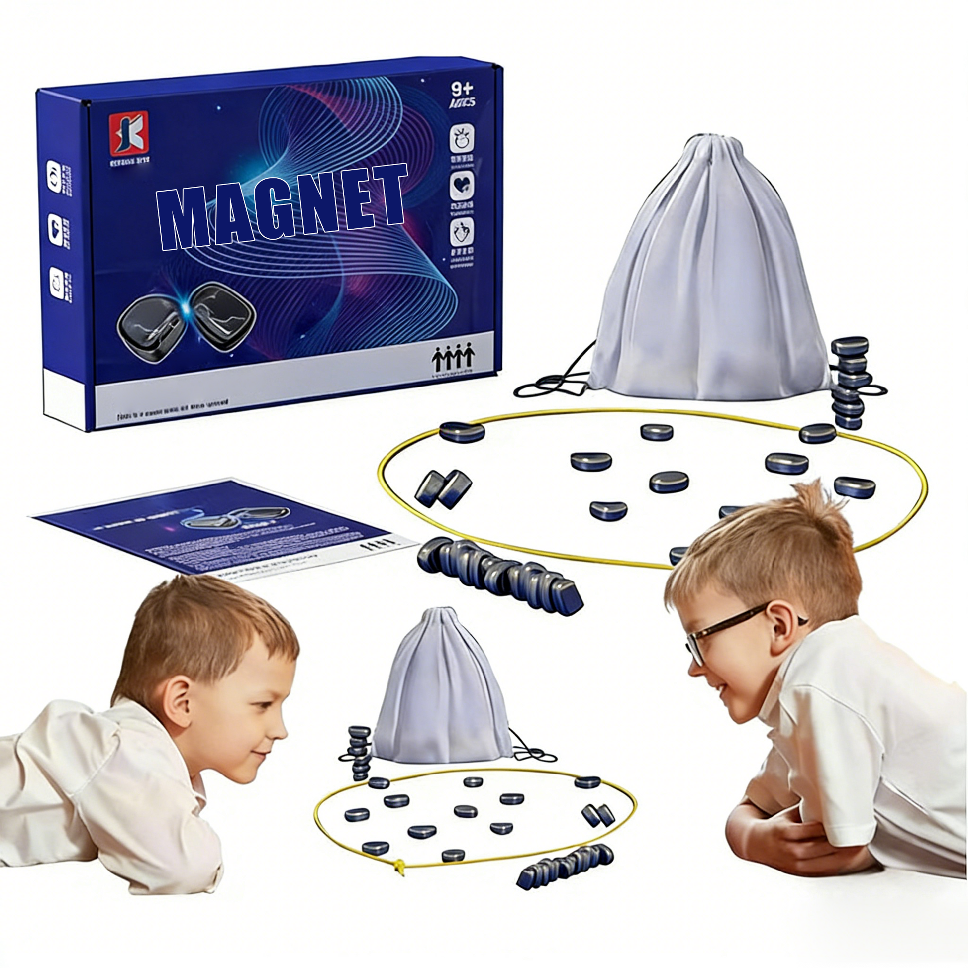 The first player to place all the magnets, you are the winner!